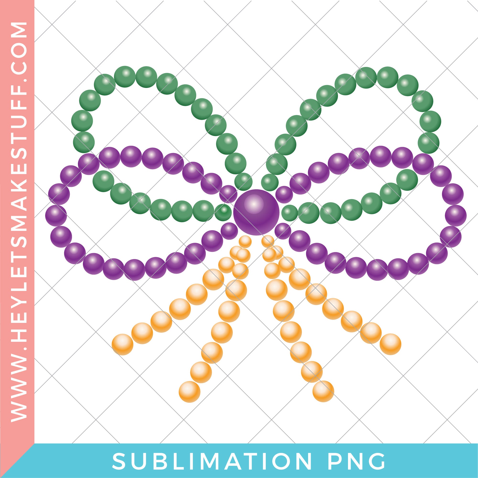 This Mardi Gras bows sublimation design adds a soft, playful touch to classic Mardi Gras colors. Ideal for apparel and accessories that blend celebration with charm!
